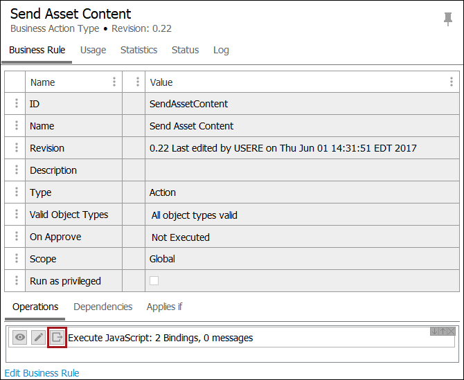 Edit in VS Code - if Visual Studio Code is installed, check this box to open the business rule in VS Code. When this box is not checked, the JavaScript is opened with the default program assigned to .js files, and if no default is set, a list of programs is presented.
