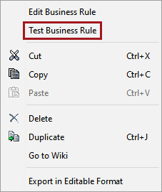 - In the workbench, there is a business rule test option that is typically used during development. To test, right-click on the business rule then select 'Test Business Rule.'
