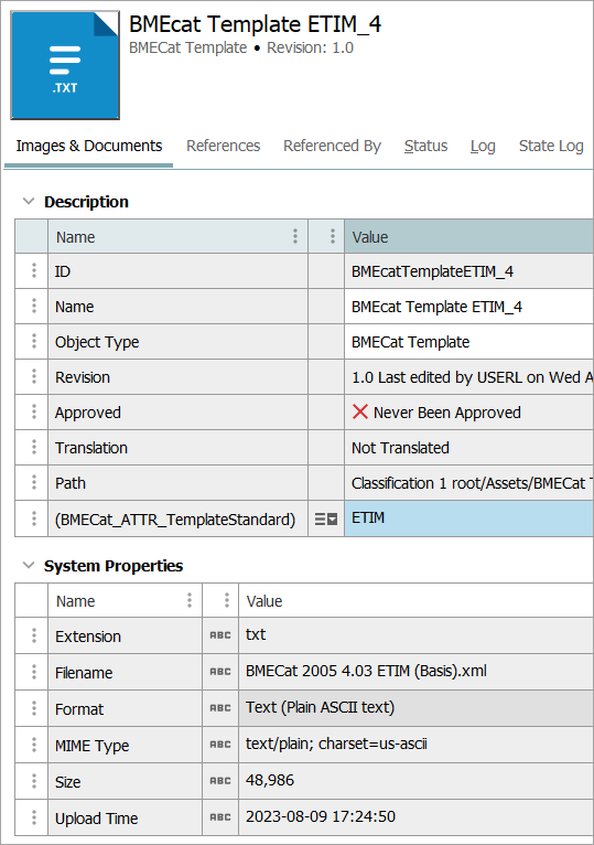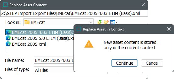 Select the BMEcat Template, click Edit > Asset > Replace Asset Content to add content.