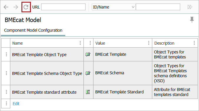 Click the Refresh button in the workbench to view the default BMEcat values if they do not automatically display upon closing the Configure Industry Model Template confirmation dialog.