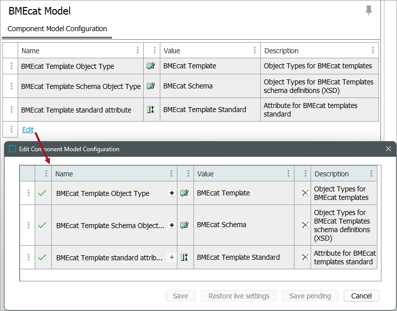 BMEcat Template Object Types are created as assets. If a user would like to add more object types, they can add them by clicking on the Edit button and adding the additional desired asset object type.