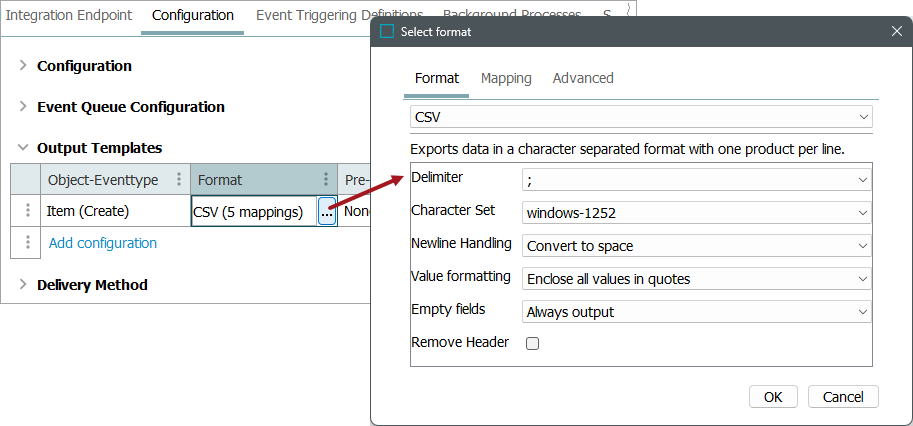Note: When using the JDBC delivery method users must select 'CSV' as the format. For more information on how to configure the CSV format for the JDBC delivery method, refer to the Exporting Data via JDBC with CSV Format topic.
