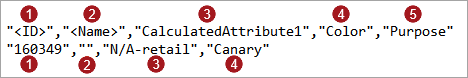 For example, if five attributes were mapped and attributes 2 and 5 are empty, the data row includes the value for attribute 1, a placeholder for attribute 2, the value for attributes 3 and 4. There is no placeholder for attribute 5 since it is the final field (no value follows).