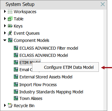 Right-click on the ETIM Model and select Configure ETIM Data Model.