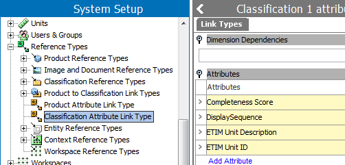 On the Classification to Attribute Link, the ETIM Unit ID and Description are stored as metadata to indicate that when used in this particular classification, only the unit specified is valid. Additional metadata includes 'ETIM Sort Number', 'ETIM Unit Description', and 'ETIM Unit ID.' The 'ETIM Sort Number' specifies the order in which ETIM determines the attribute is most relevant. If System Settings > 'Default Attribute to use as Display Sequence Attribute' is specified, the sort number will be put as metadata in this attribute, instead of using the 'ETIM Sort Number.' Notice however, that STEP does not support display sequence settings on classifications.