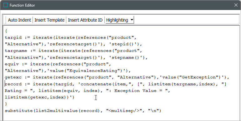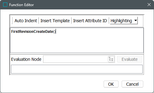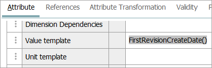 While in the attribute editor, on the 'Value template' parameter, select and copy the Value column text. In this example, select FirstRevisionCreateDate().