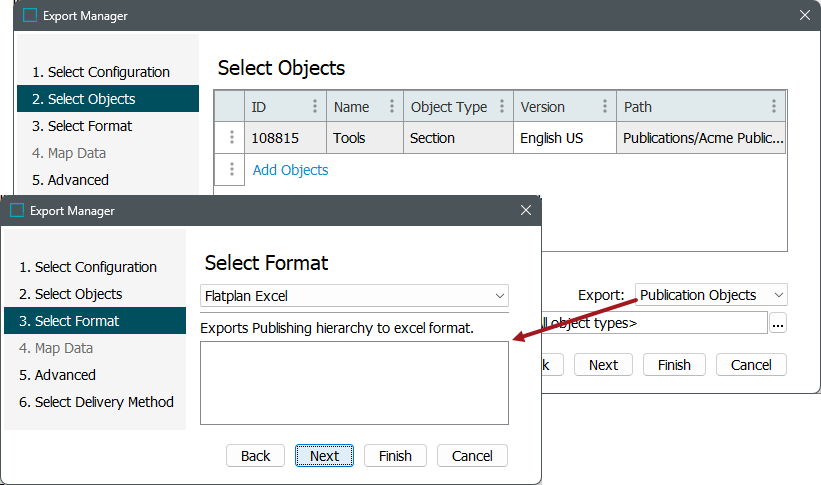 After selecting a publication on Tree, right-click and choose Export Data Below to refer to the Flatplan Excel format option in Export Manager.