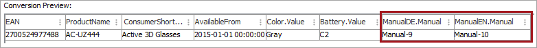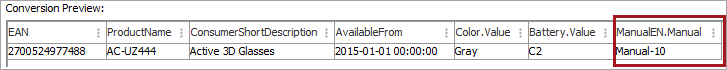 To filter repeated elements so that only elements with specific identifiers are considered, add the identifier to the "[?Repeated?]" instruction. To get only 'ManualEN' data, update the template as follows.