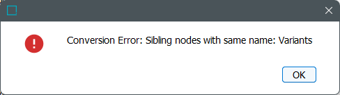 Click the Sample reload button and a message is displayed about sibling nodes with the same name: