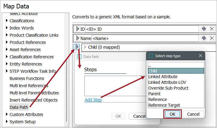 1. After mapping the SalesItem ID and Name, use the Data Path - Child option to map the Child target.