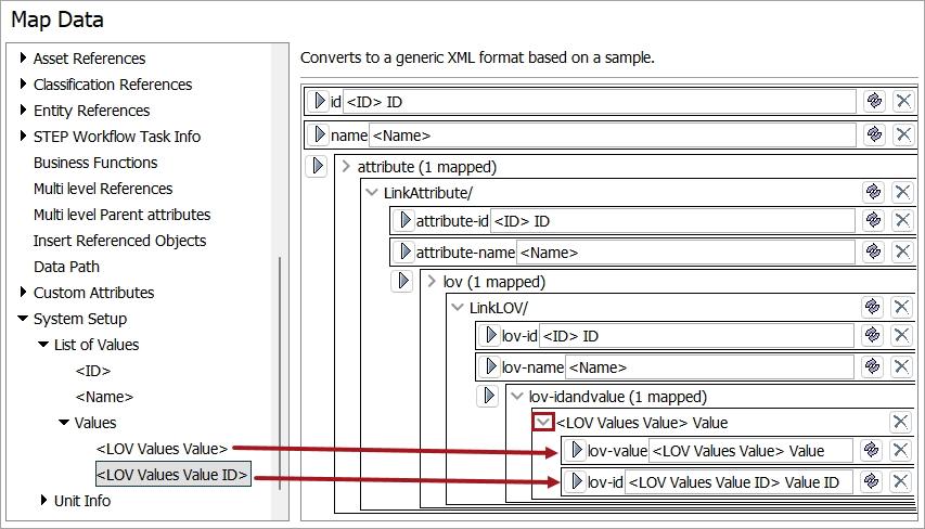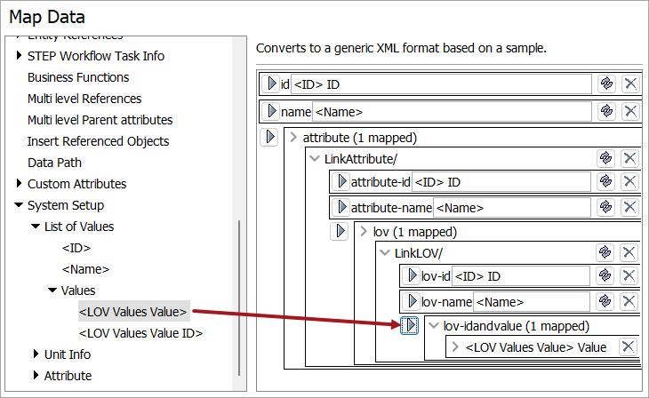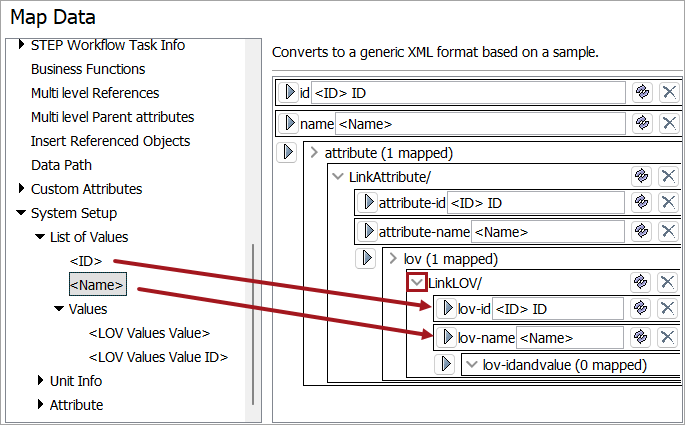 Mapping Attribute Links, LOVs, and LOV Values in Generic XML