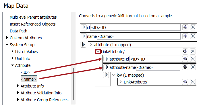 2. Open the LinkAttribute/ section and map Attribute ID and Name.