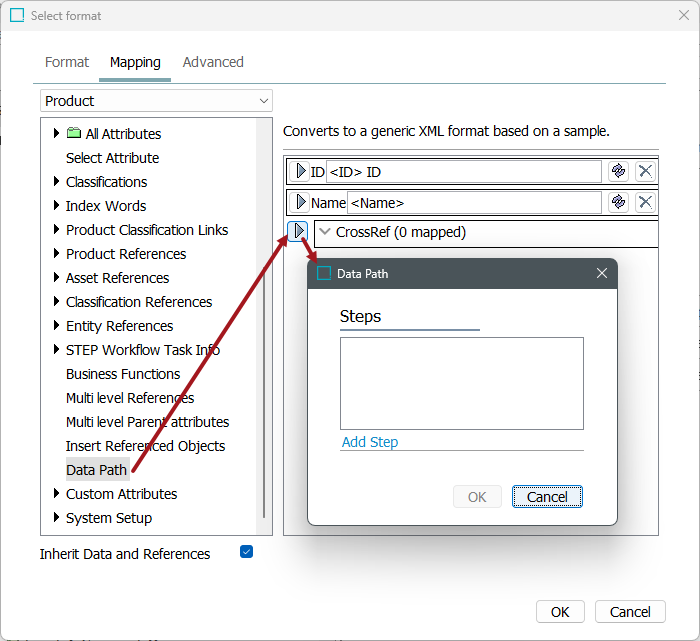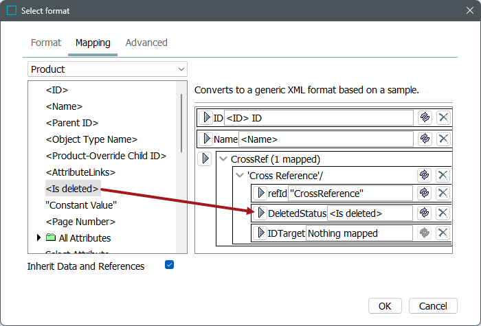 The Reporting Deleted Product References with a Generic XML OIEP topic discusses additional setup for a Generic XML export. Use the following steps to map the Product and monitor for deletion of product references.