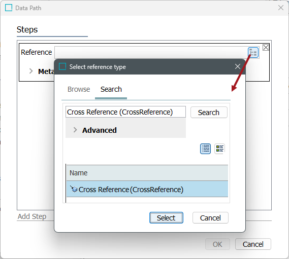 - Click the Path button, click the Add Step link, and select Reference Target.