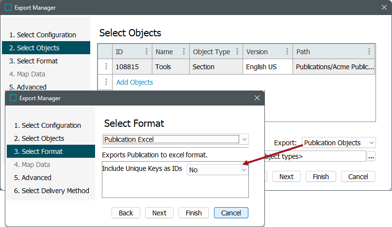 For more information on the Publication Excel export process, refer to Exporting Publications in Excel.