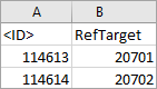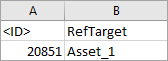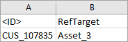 • The inbound file must contain the ID or key (not the name) of the target object for the reference (asset).