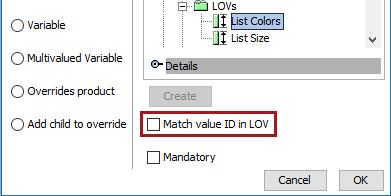 1. If the attribute selected is an LOV, set the Match value ID in LOV appropriately: