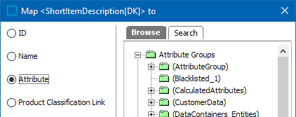 Note: Only description attribute(s) can be mapped to a classification. Selecting a specification attribute displays an error.