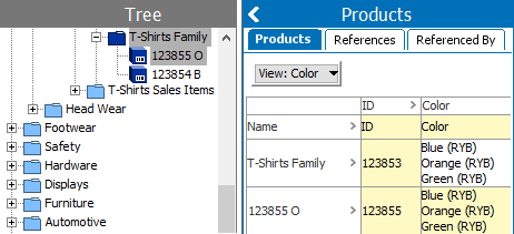 The Color attribute has a local value on the family object, and the values are inherited to the same attribute of the child object. The following shows a view created to show the values available for both the parent and the child.