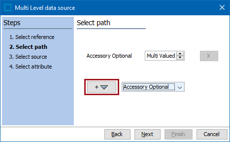 Note: The multi level references data source is available for most formats that require mapping. This option is not supported for the Excel Smartsheet format. This option is also not supported in the STEPXML format since mapping is not available.