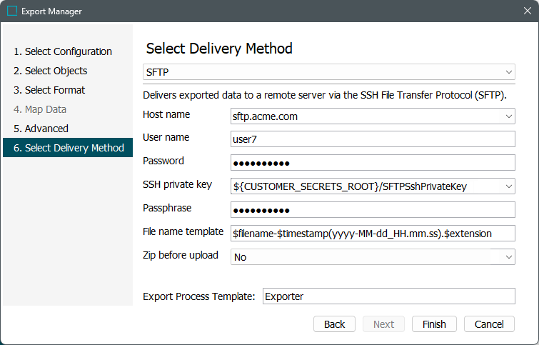 In Select Delivery Method, choose SFTP from the dropdown.