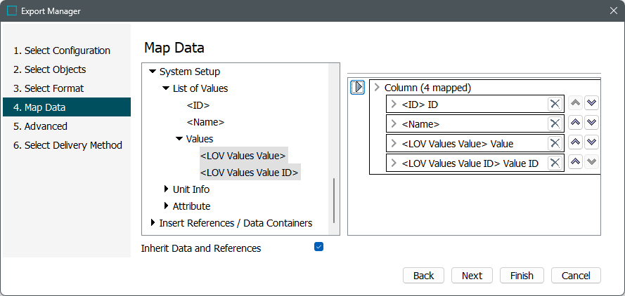 ) to modify the output data as defined in the Outbound Map Data - Transform topic. - Click the Next button to display Export Manager - Advanced.