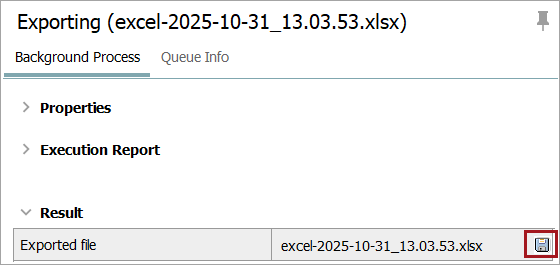 Select the name of the exported file and then double-click the name to open it using an available editor for the output format. In the image above, the file will be opened in Excel.