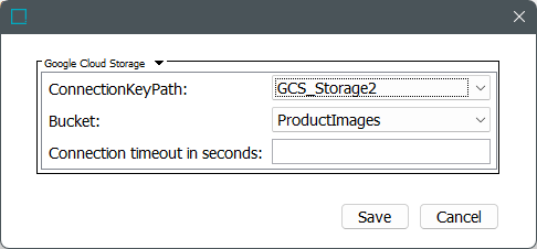 • ConnectionKeyPath - Select the desired Google Cloud Storage connection.