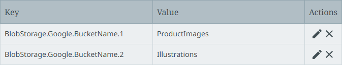 5. Configure the Bucket dropdown parameter using the BlobStorage.Google.BucketName.[*] property. For example, using this configuration, two options are displayed in the 'Bucket' dropdown for the Gateway Integration Endpoint (explained in the next section):