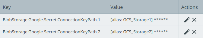 4. Configure the ConnectionKeyPath dropdown parameter using the BlobStorage.Google.Secret.ConnectionKeyPath.[*] property. For example, using this configuration, two options are displayed in the 'ConnectionKeyPath' dropdown for the Gateway Integration Endpoint (explained in the next section):