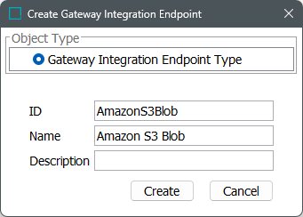 1. Enter an ID and a Name for the integration endpoint. The Description parameter is optional.