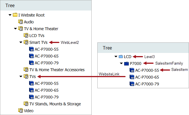 Only leaf level (Sales Item) can be linked into the classification hierarchy and only leaves should be published.