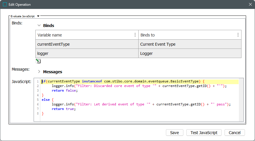 Event Filter - As data will be published based on derived events alone, all core events for Sales Items should be discarded. The script below does this and also, for debugging purposes, logs to the main Java log.