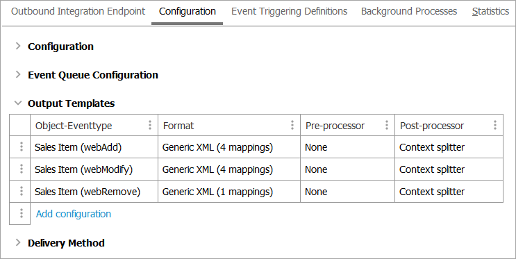 A better approach is to use three derived events with IDs 'webAdd', 'webModify', and 'webRemove' in an event-based OIEP. The conditions for triggering the different events are listed below: