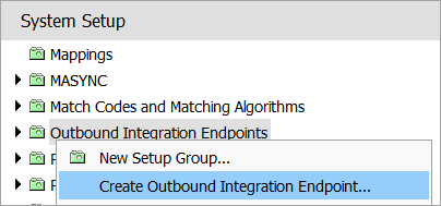 - In System Setup, right-click the Outbound Integrations Endpoints setup group, and click Create Outbound Integration Endpoint.