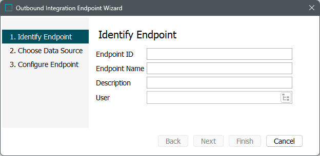 - The Outbound Integration Endpoint wizard displays and involves the following steps: