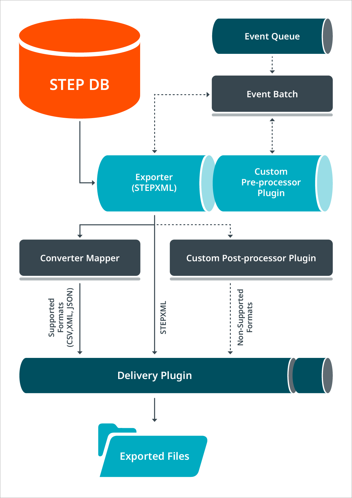 • The XSLT Post-processor requires STEP XML or Advanced STEPXML as output. To reduce the size of the output, configure Advanced STEPXML to limit the exported attributes.