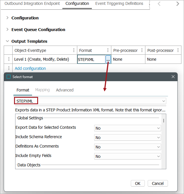 - For the new OIEP, open Configuration > Output Templates > Add configuration > Format > click the ellipsis button (