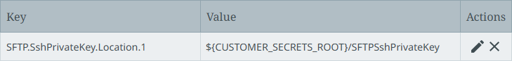 Configure the SSH private key dropdown parameter using the SFTP.SshPrivateKey.Location.[*] property. For example, Using this configuration, two private keys are displayed in the 'SSH Private Key' dropdown parameter: