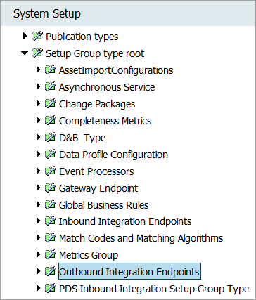 Review your System Setup tab to determine if one or more outbound integration endpoint nodes already exist. The name of the node on your system is not required to match the one in the image below.