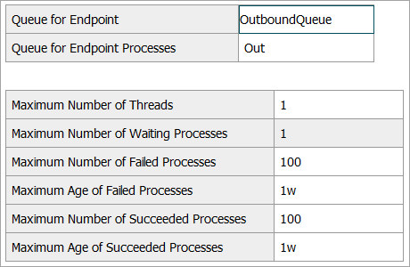 - Click the Queue for endpoint (legacy), Queue for endpoint process (legacy), Maximum Number of Threads, Maximum Number of Failed Processes, or Maximum Age of Failed Processes, Maximum number of succeeded processes and Maximum age of succeeded processes parameter to edit the text with the field.