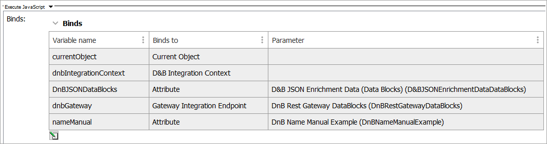 //Using this D&BEnrichConfigDataBlocks config to set integration status attributes, even though 'D&B Product' is set to 'Analytics Assessment Material Change (aasmcu)' The 'D&B Product' setting is not used.