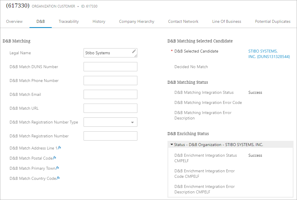 | D&B internal server error - continue | Matching error | Profiling error | ||