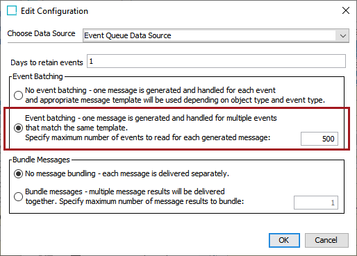 Number of Events to Batch: In the Event Queue Configuration flipper, set the 'Number of Events to Batch' parameter to a maximum of 500 for optimal performance of the integration.