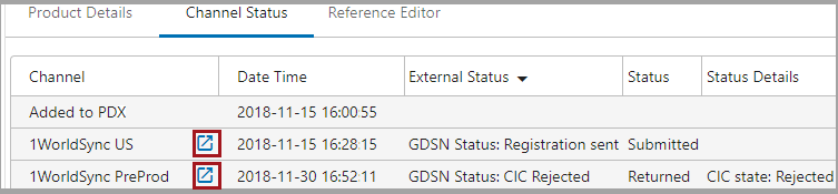 The PDX Channel Status Web UI component includes a link to products that have been submitted to a channel within the PDX system. Users that are also logged into their PDX system will be redirected to the relevant product in the context of the channel when clicking the provided link.