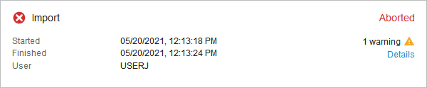 Records were imported, but error-prone values from attributes, references, or data containers were not imported. Details of both warnings and errors can be reviewed in the importing BGP log. Records with errors can be downloaded in a file for review.