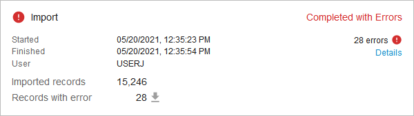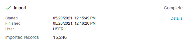 - Complete - all records were imported without any errors or warnings.
