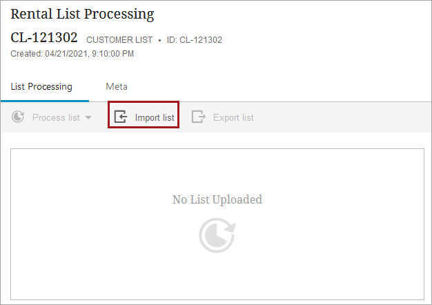 - When upload is complete, the dedicated List Processing Screen displays relevant information about the newly created list.