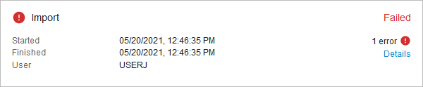 - Failed - the importing BGP failed to complete the importing process due to severe errors occurring above the records processing level. When the Import status is failed, no data is imported.