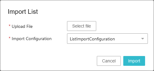 - For the Import Configuration parameter, when uploading a file, select a pre-configured import configuration that can be used to the data model of the entity records in the list. Users can import lists in any of the file formats supported by the STEP importer. For more information, refer to the Import Manager topic in the Data Exchange documentation.